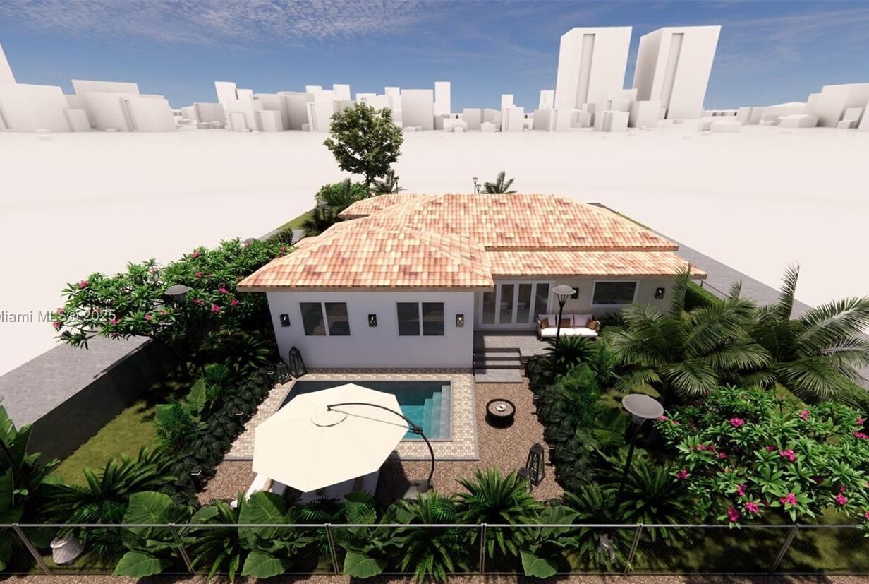 Renovated income-producing property with approved plans and permits. 5BD/3BA with open layout, high-end finishes, new roof, kitchen, baths, and systems. Features modern kitchen, pool, patio, strong curb appeal. Prime Design District location. T4-R zoning allows up to 5 townhomes or 11 if unified.